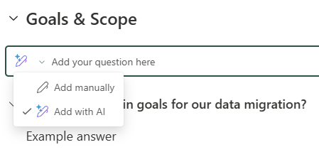 You still have to manually define your Answers. The interface for this looks just like the text webparts. There’s a small option there to, once you’ve typed in something, create the answer with Copilot or to reference concent (paperclip icon).